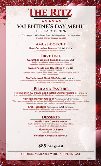 The Ritz On Union has a traditional heritage while bringing a modern flair. We pride ourselves on providing a good sense of value with exquisite taste, presentation, and ambience.
